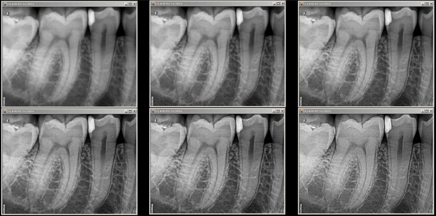 Trois modes anatomiques peuvent être appliqués aux images (endodontique, parodontique et jonction dentine-émail) et un filtre de netteté avec un curseur dynamique intuitif permet de visualiser en temps réel les changements de contraste. En utilisant une netteté allant de 0 à 6, vous pouvez choisir le contraste de l'image que vous préférez.