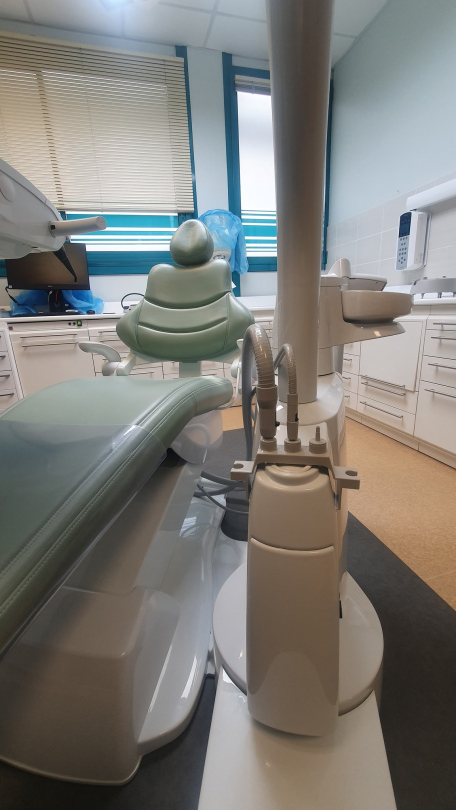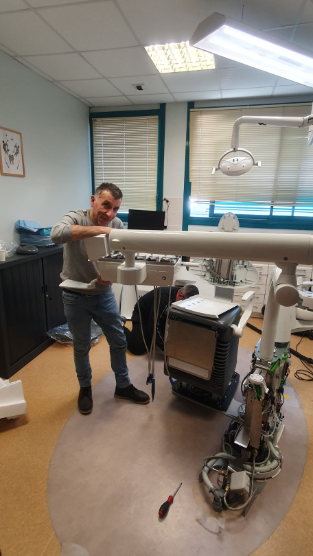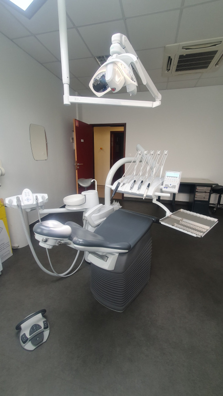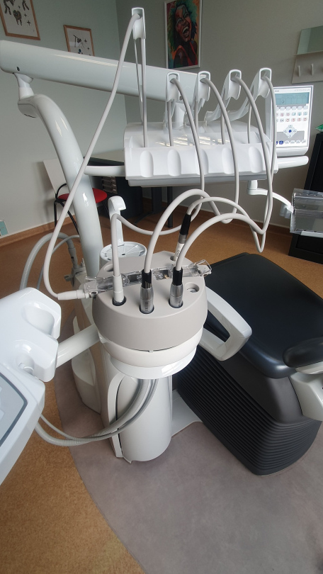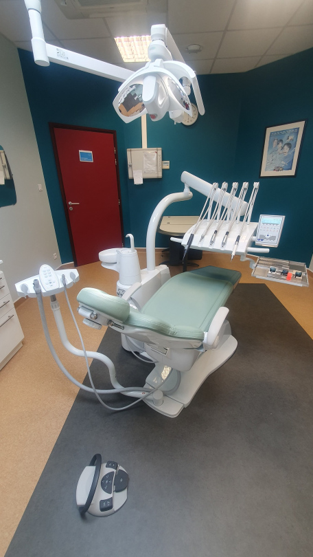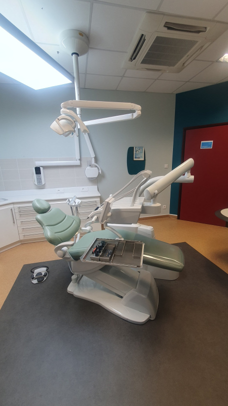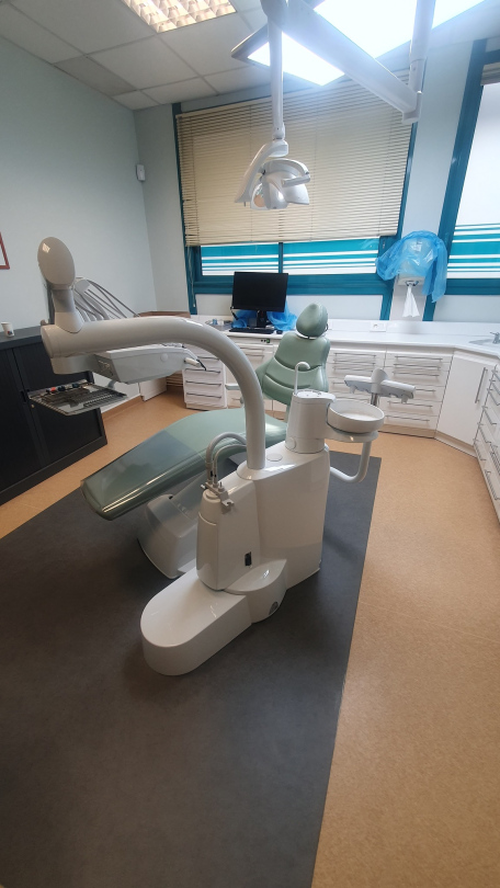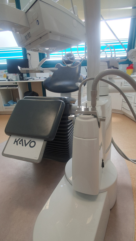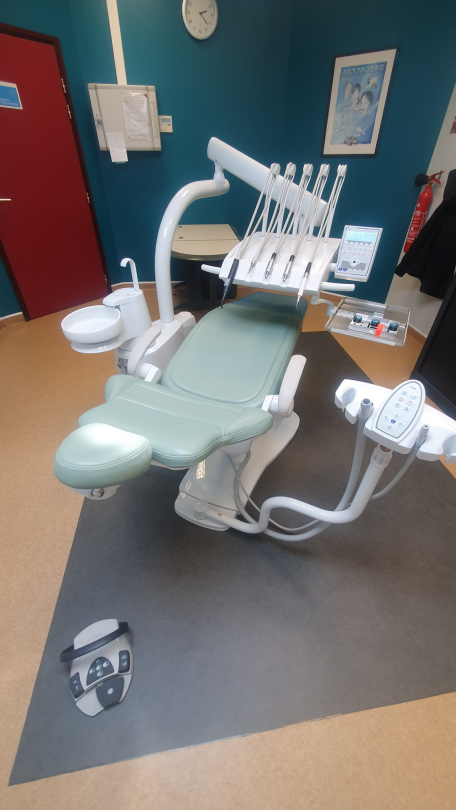 Installation de trois fauteuils KaVo E50S life dont deux fauteuils compact chair et un standard avec sellerie relaxline teinte Agave ! Pédales sans fil et désinfection automatique de l'aspiration avec la fonction Dekamat et décontamination des sprays Oxygénal.