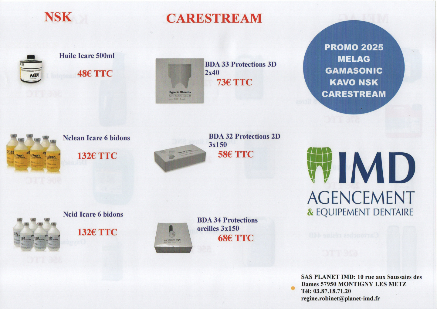 Nous sommes ravis de vous présenter notre nouvelle offre Promo 2025, dédiée aux consommables pour cabinets dentaires. Sur notre flyer promotionnel, vous trouverez une sélection de produits des marques de renommée mondiale : Melag, Gamasonic, Kavo, NSK, Carestream.